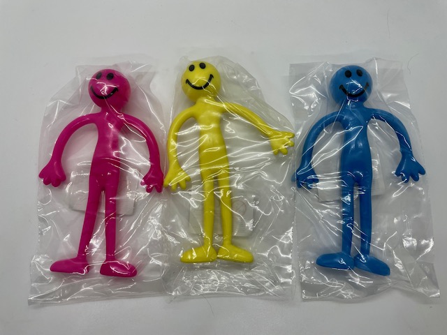 Bendy smiley man, in an assortment of colours. You receive one toy, selected at random. Ideal for party bag fillers.
